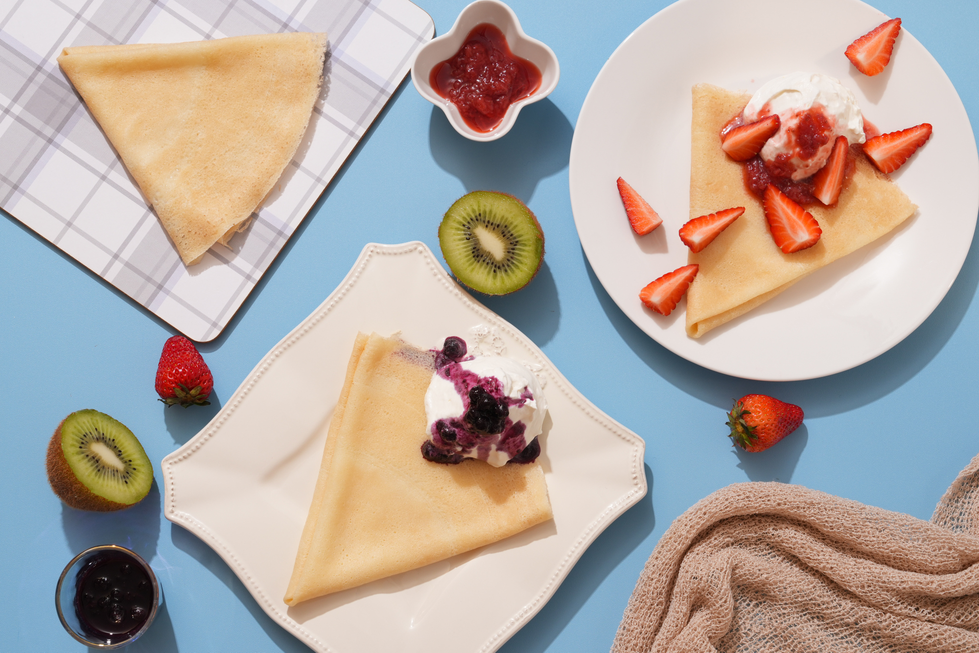 たまごを使わないもちもちのクレープ生地の食感をぜひどうぞ。